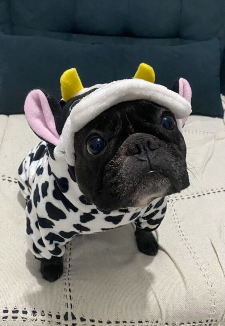 Turn your home into a barnyard of joy — starting with your adorable pet in this cow costume!